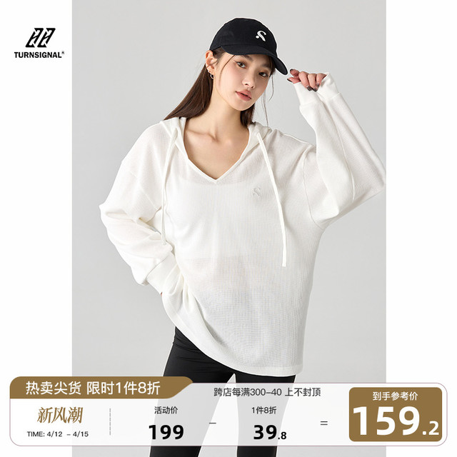 TURN SIGNAL 潮牌V领连帽长袖T恤女2024新款宽松休闲运动上衣春秋139.2元(需买2件,共278.4元)