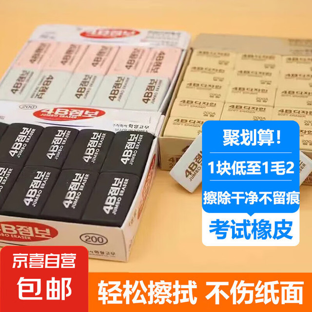 Jumbo 4B橡皮擦少屑不易留痕金字4B橡皮黑色韩文儿童小学生用少碎屑幼儿园美术生 黑色 10个