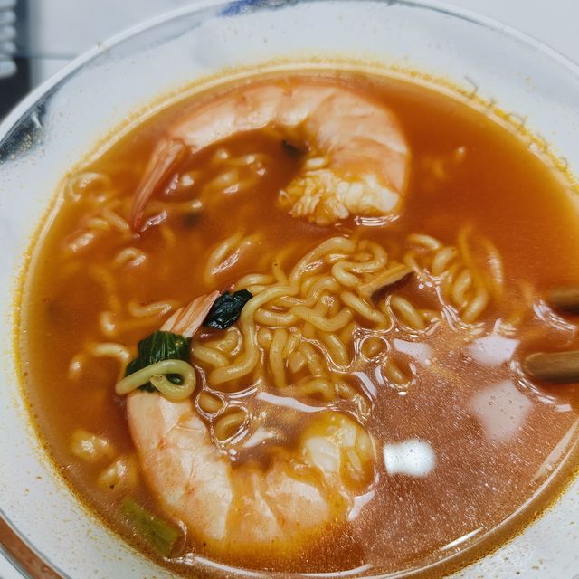 泡菜拉面确实很好吃,不油腻面吃着也不辣