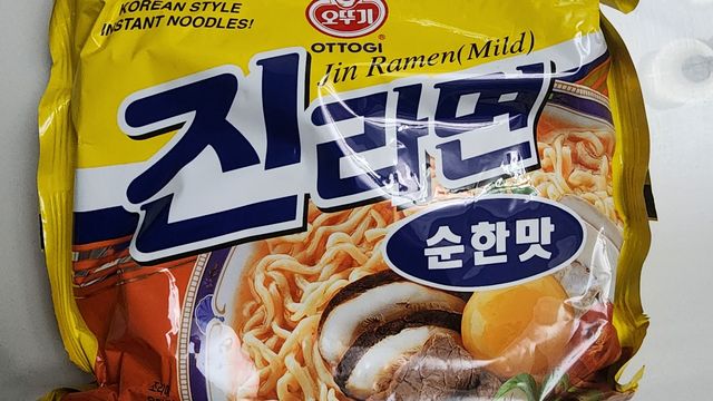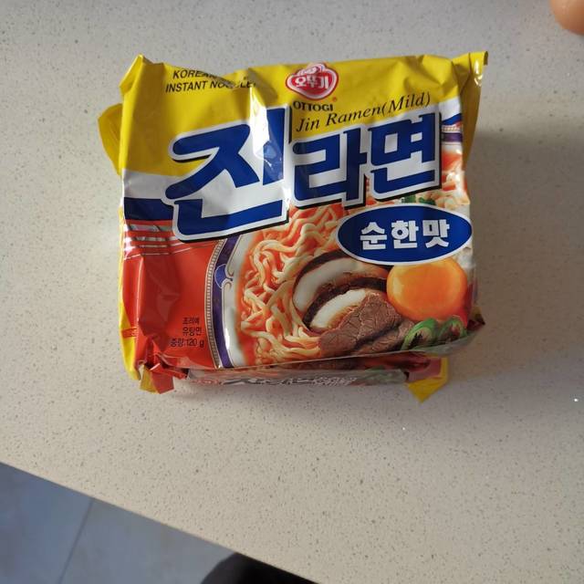 大妈上推送的泡面,看着是韩国金拉面,跑男同款,看着好奇,就买了。价格好像是25两大包,就是25块钱10包,2.5一小包,打开以后有一包蔬菜包,一包料包,还有一块...