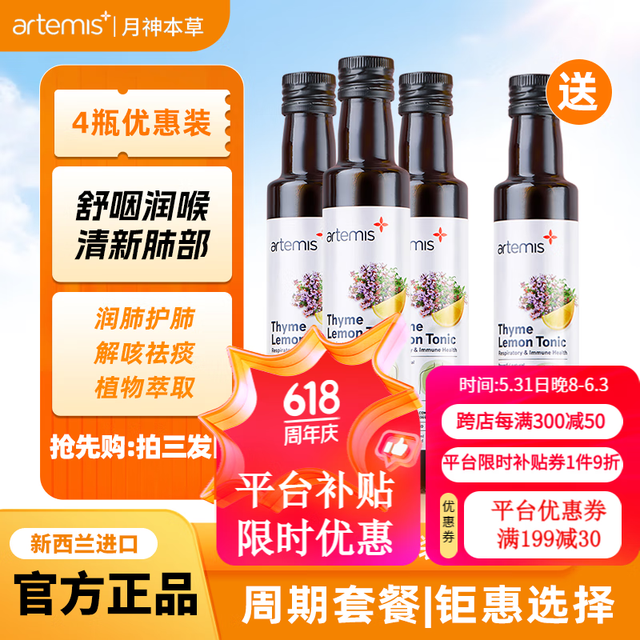 128 Artemis 新西兰Artemis月神本草百里香柠檬滋养液护养肺部清道夫肺保健品89.33元(需买3件,共268元)