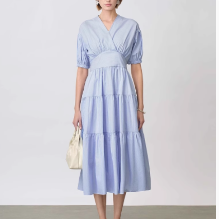 152 邂逅悠然假期——sdeer圣迪奥V领蓝白条纹吊带两件套连衣裙