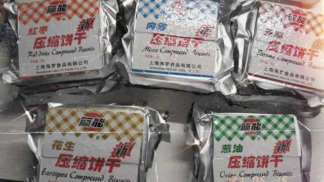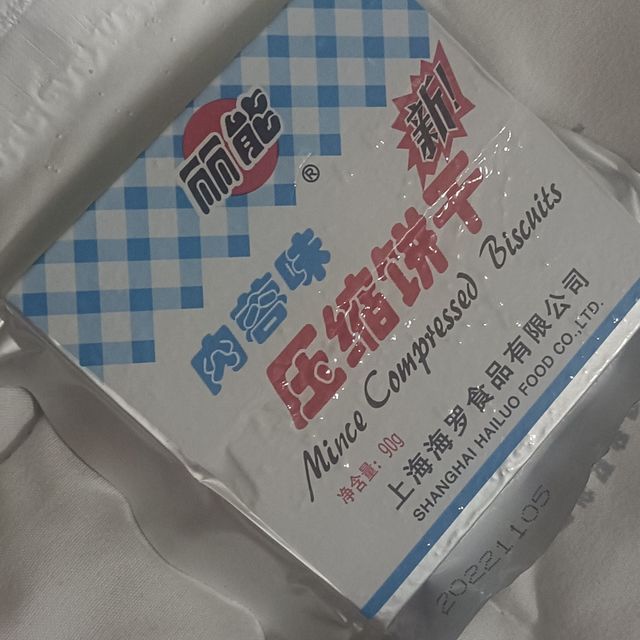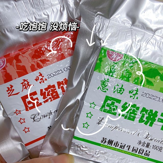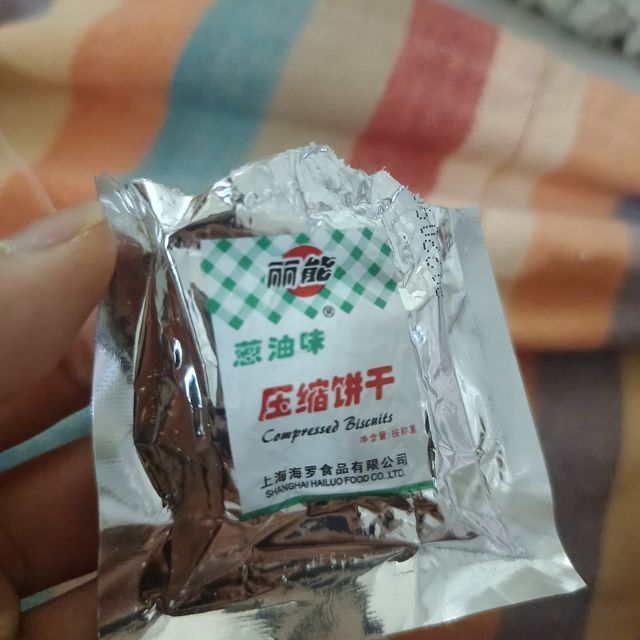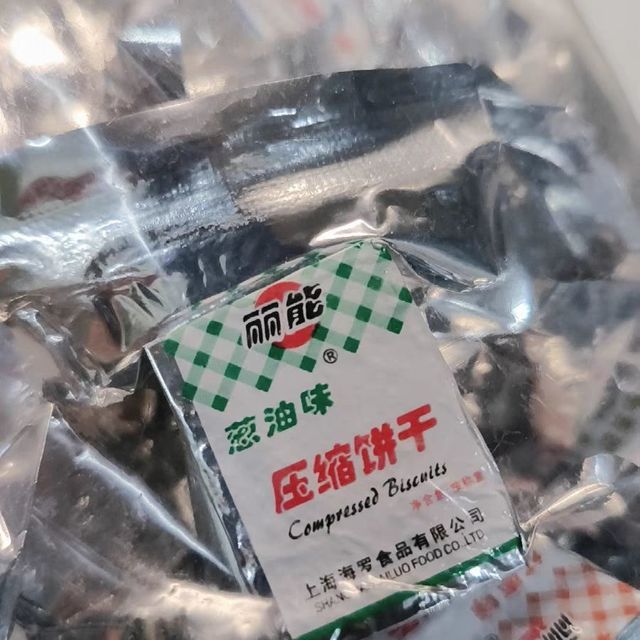 说实在的,我们这个年代的人很少能吃到压缩饼干的,这块饼干还是妈妈给我的我本来觉得应该会是很干很硬的那种没想到还挺好吃的,吃上头了,我这个是葱油味儿的咸咸的,还有...