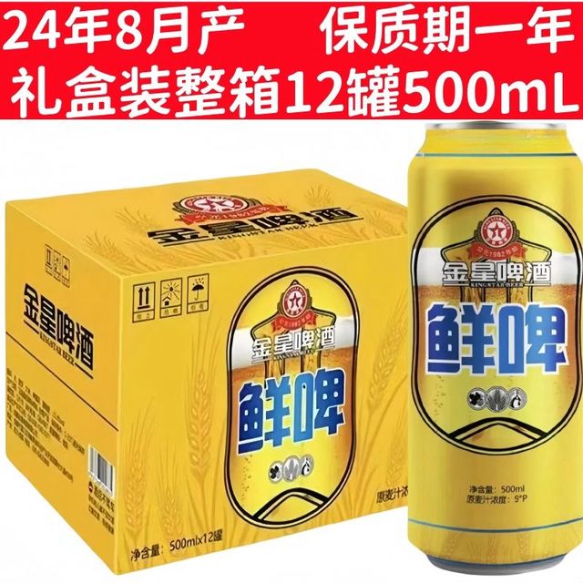 LANYU 蓝雨 金星啤酒鲜啤原浆12罐500mL麦汁9°酿造无添加经典口感原码整箱发