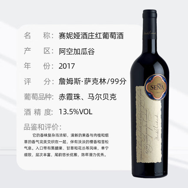 466.98 SENA 桑雅酒庄 正牌 干红葡萄酒 2017年 750ml 单瓶装875元(1件7折)