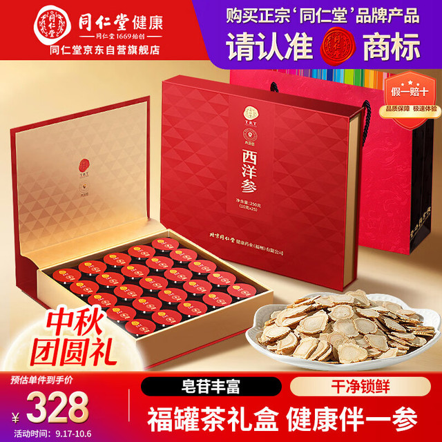 青源堂 北京同仁堂 西洋参250g 中秋礼盒 送父母 送领导