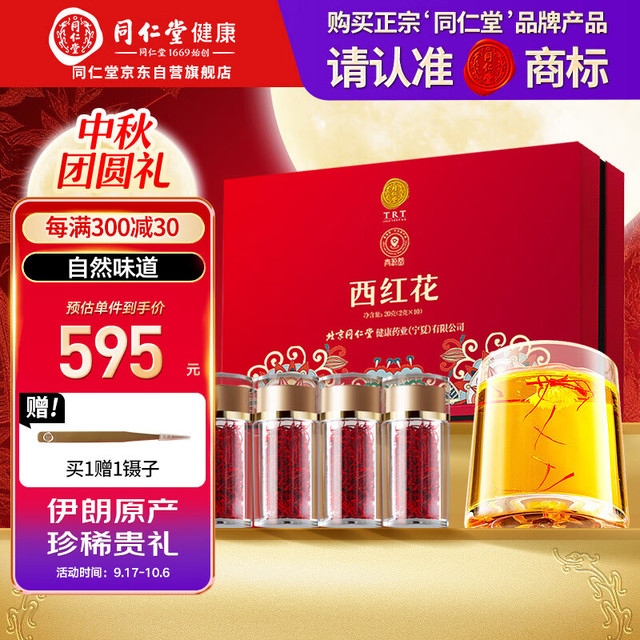 青源堂 北京同仁堂 青源堂藏红花礼盒20克 伊朗精选特优西红花番红花臧红花女性滋补品袋礼品