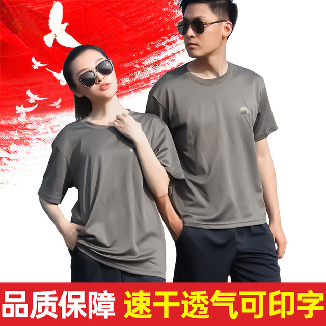 体能训练服套装夏季男女军迷短袖短裤作训服速干正品圆领体能t恤 180-185/100 灰色单上衣