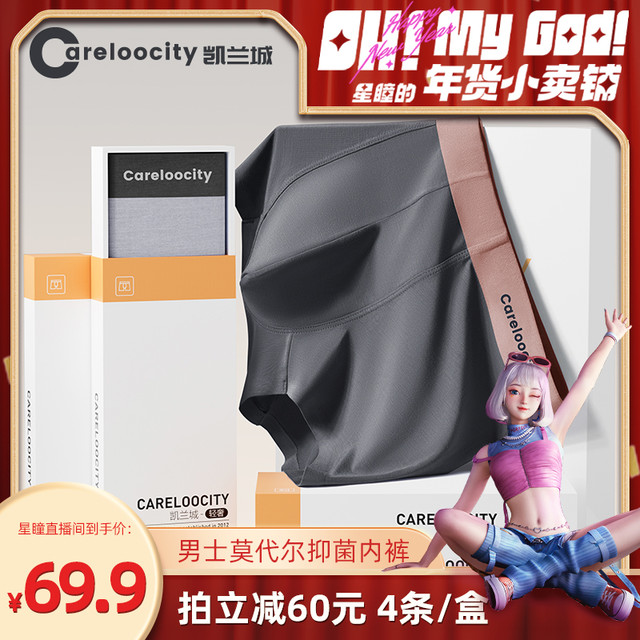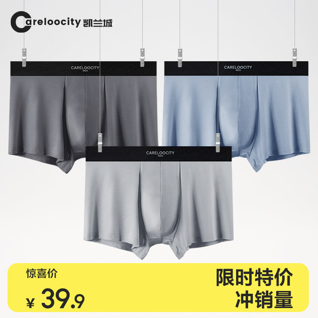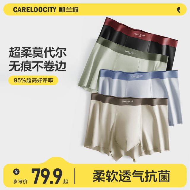 Careloocity 凯兰城 男士内裤男生莫代尔四角平角裤薄款抑菌裤头66.57元(需买3件,共199.71元)