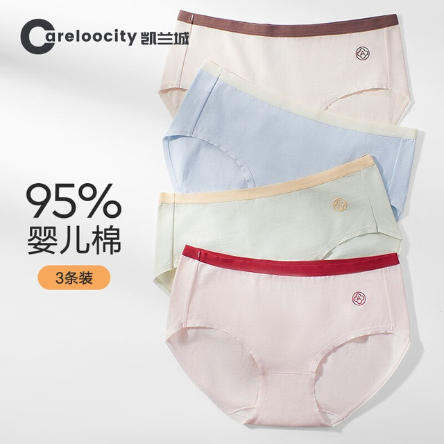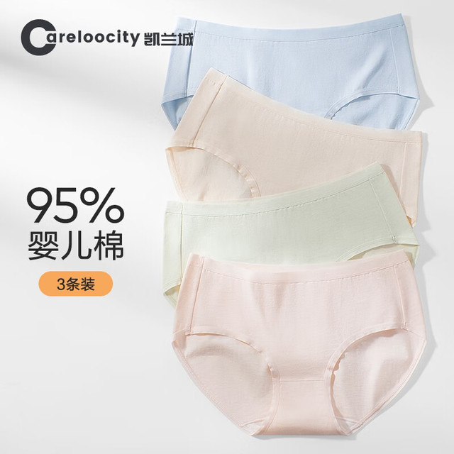 Careloocity 凯兰城 女士内裤女纯棉无痕中腰全棉档抗菌女式三角内裤少女生短裤3条装 3条装A款-G1 云杏、晴蓝、亮粉 L码(100-120斤)34.9元(需用券)