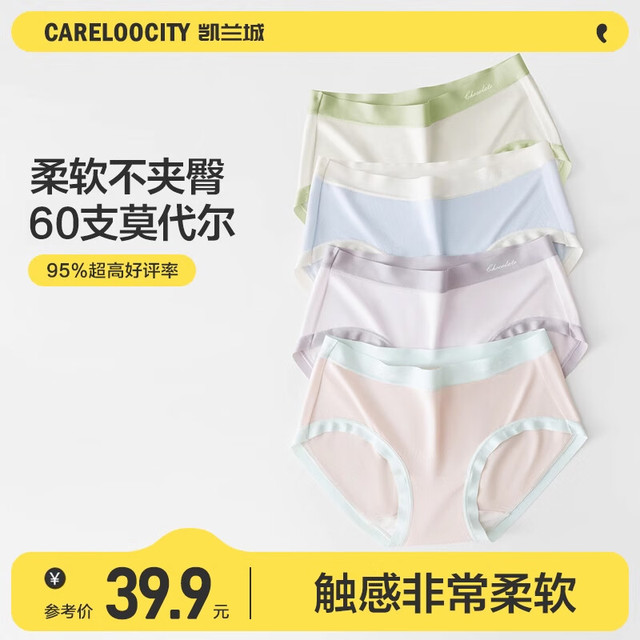 Careloocity 凯兰城 女士内裤女纯棉裆莫代尔全棉抗菌少女生无痕39.9元(需用券)