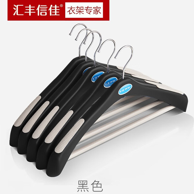 汇丰信佳 欧码加长衣柜收纳西装衣架塑料衣架衣挂衣撑子成人裤架 黑色 10个