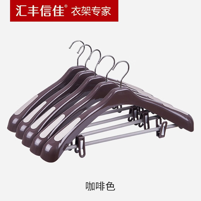 汇丰信佳 男式简约 可挂西裤 附带裤夹 西装衣架 塑料衣架衣架子 47cm 咖啡色 4个
