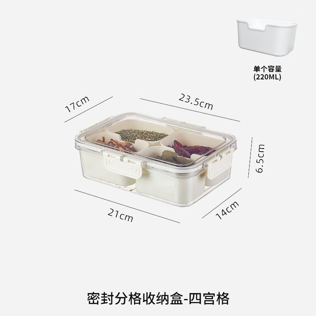 汇丰信佳 花茶收纳盒透明分隔养生存放中草叶调料养生冰箱用抽屉药材储物箱 密封分格收纳盒-四宫格