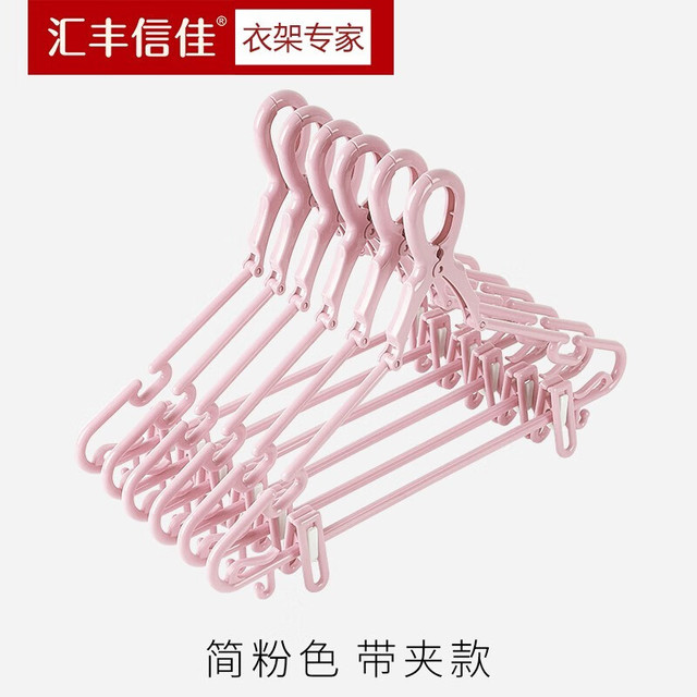 汇丰信佳 带夹防风衣架高层防掉落衣架厚塑料衣架室外晾晒架晾衣架 简粉色家庭通用 3个
