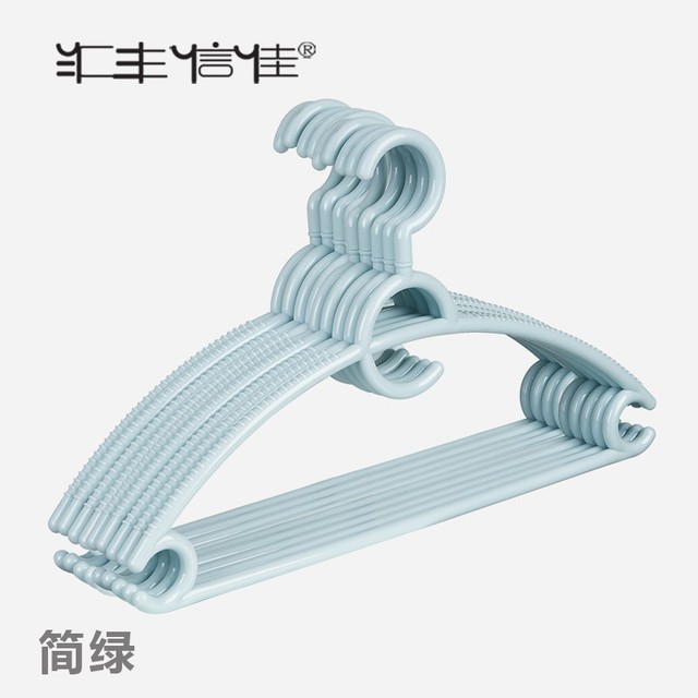 汇丰信佳 无痕防滑弧形 家用加粗耐用 塑料衣架衬衫衣架 衣架子 41cm 草绿色 5个