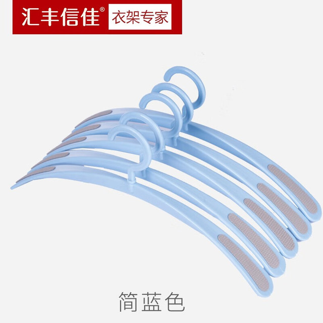 汇丰信佳 无痕弧形防滑宽肩加厚成人塑料衣架衬衫衣架衣挂撑子42cm 简蓝色 20个
