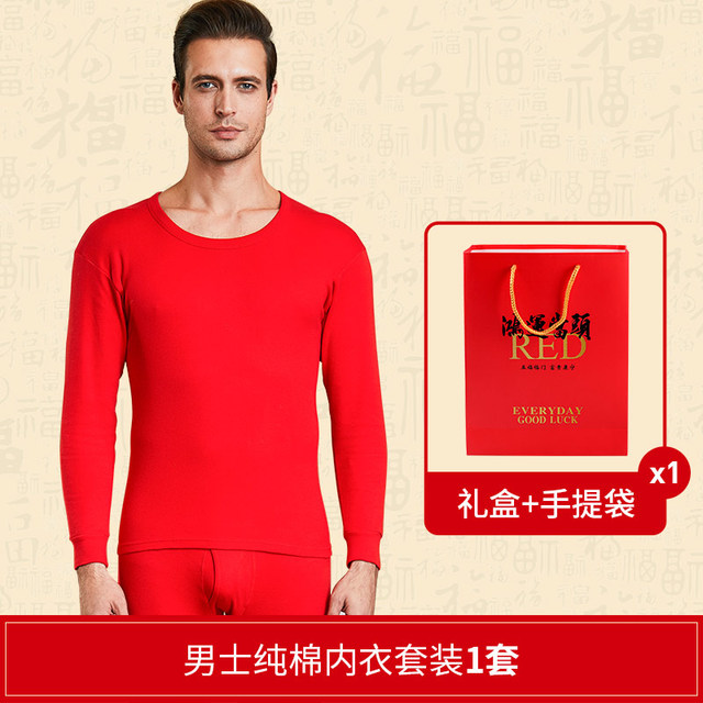 移动端:健丹鸟 南极人 本命年套装大红色纯棉秋衣秋裤男士加绒保暖内衣女龙年礼盒49元淘金币最高抵扣1.47元