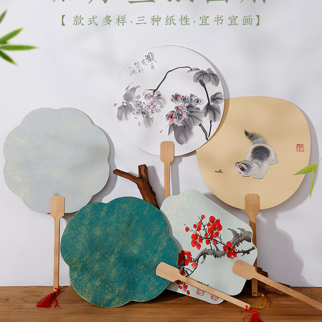泾徽堂 宣纸空白团扇子 古风手绘国画扇面儿童水彩画宫扇diy 扇子材料包