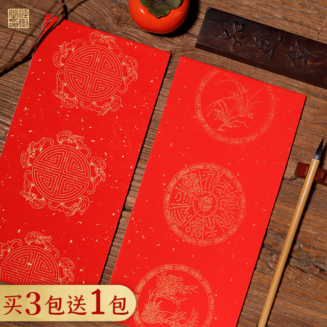 泾徽堂 对联红纸万年红宣纸对联纸洒金龙凤大红纸 新年门联毛笔书法手写空白春联五言 七言 九言 十一言批发2020年