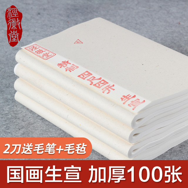 泾徽堂 安徽宣纸四尺四开生宣国画专用练习书法纸半生半熟宣纸批发100张 熟宣半生半熟国画工笔画书法作品纸