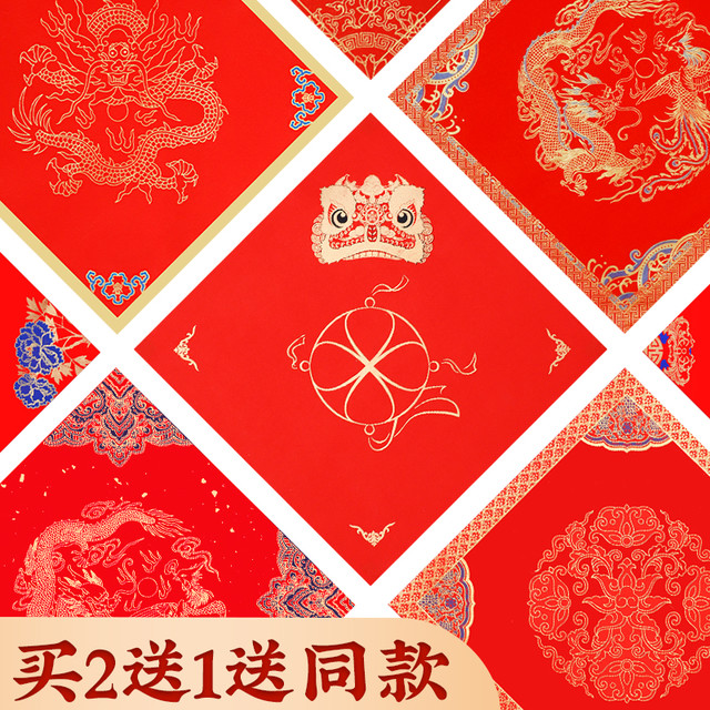 泾徽堂 2024龙年万年红蜡染福字斗方红色宣纸寿字春字喜字空白春联对联纸手写大门贴宣纸龙凤洒金大红纸粉彩半生熟