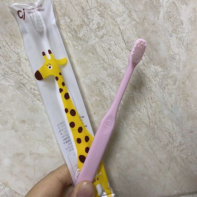 牙刷我选择了日本ci的宝宝牙刷 粉色的是大象的软毛,现在在用的 牙刷头小小一个刷小朋友的小牙齿刚刚好,而且牙科医生也推荐这个牙刷用得放心。
