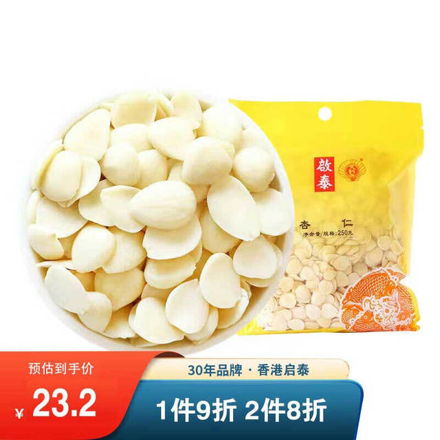 启华 启泰 香港启泰南北杏仁片生甜杏仁干新鲜去皮脱皮白原味广东煲汤打豆浆