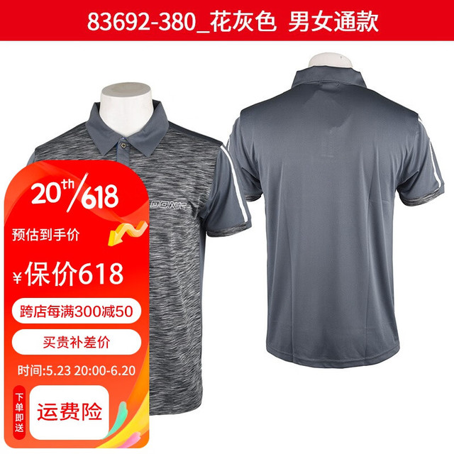 DONIC 多尼克 乒乓球服 男女款运动服立领短袖T恤 83692-380_花灰色 S