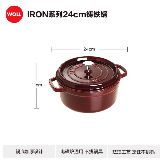 弗欧 德国woll2023新品珐琅锅樱桃红铸铁锅汤焖锅家用电磁炉煲汤炖锅