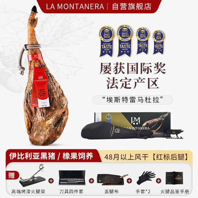 伊比利亚山 LA MONTANERA西班牙火腿伊比利亚整腿7-8kg 纯橡果红标礼盒进口源头直发包邮