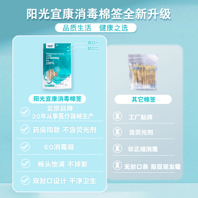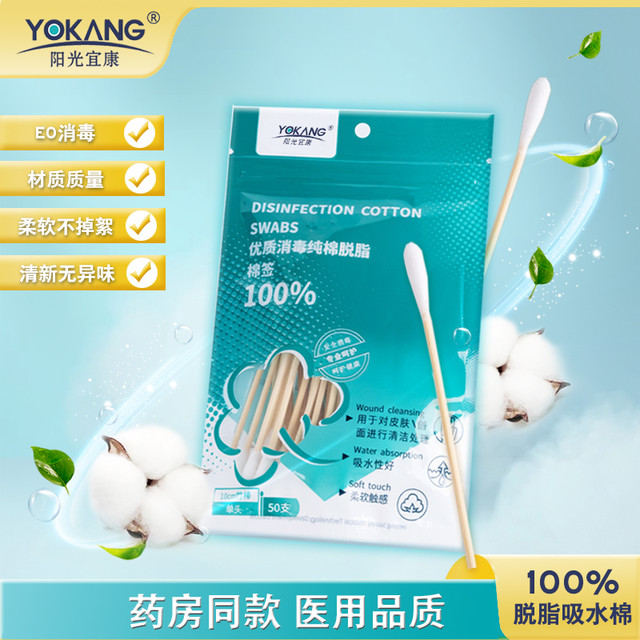 阳光宜康 医用棉签棉花蘸取碘伏或酒精消毒棉棒一次性家用脱脂棉签