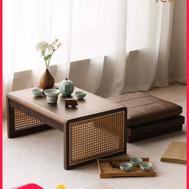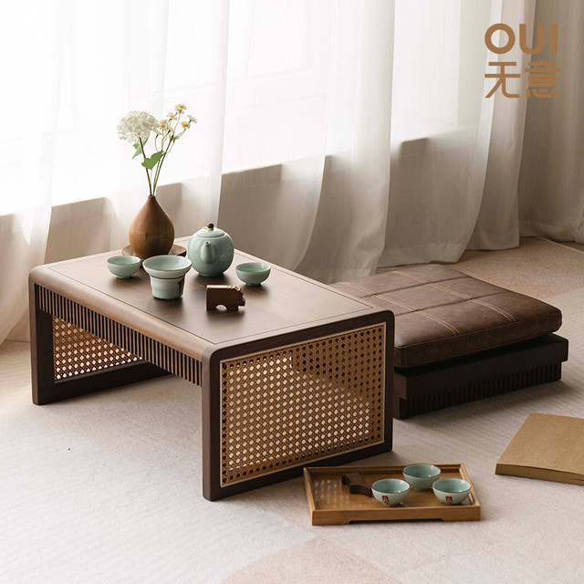 无意 实木飘窗小桌子榻榻米茶几阳台小茶桌黑胡桃木炕几坐地矮桌
