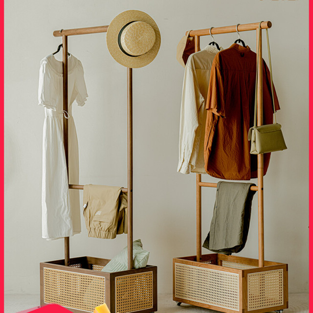无意 实木挂衣架落地卧室衣帽架家用简约收纳架室内不占地衣服架子