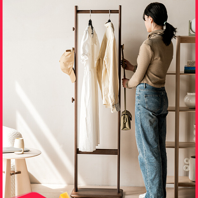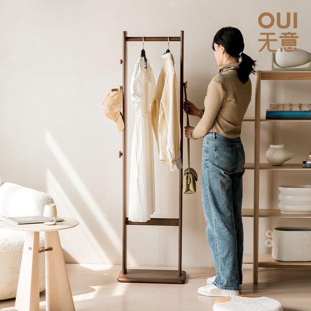 无意 实木卧室落地挂衣架黑胡桃木玄关衣架室内家用不占地衣帽架