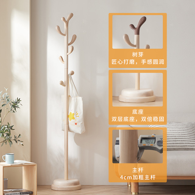 无意树芽落地客厅实木立式衣架儿童卧室衣帽架轻奢衣服架子挂衣架