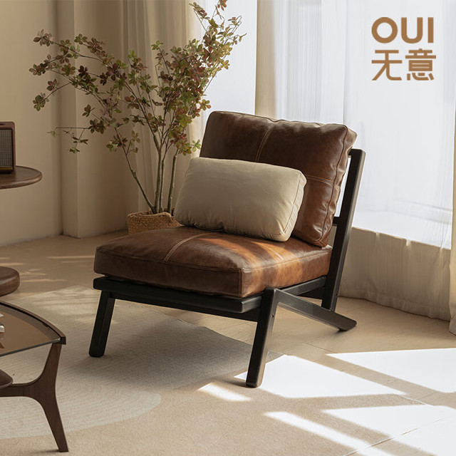 无意实木单人沙发椅阳台休闲懒人沙发小户型客厅老人沙发新中式躺椅 亮咖橡木沙发椅