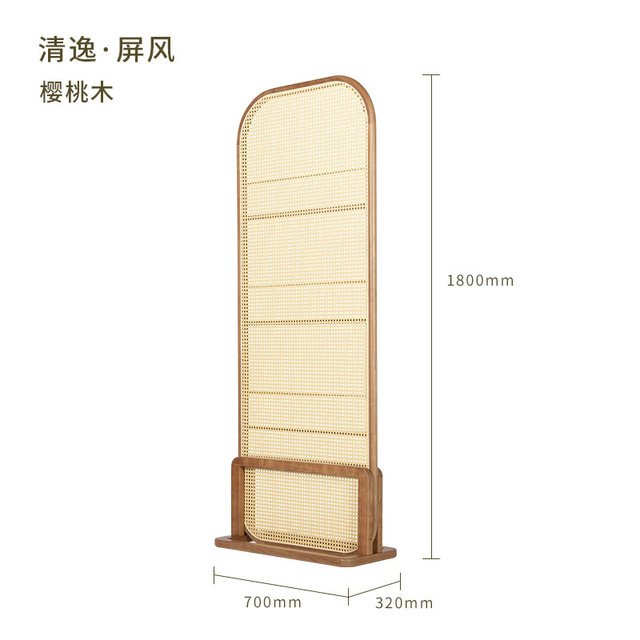 无意 清逸屏风 日式藤编屏风 进口樱桃木