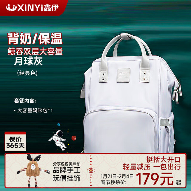 鑫伊 妈咪包 时尚手提外出大容量多功能母婴背包妈妈双肩包 月球灰