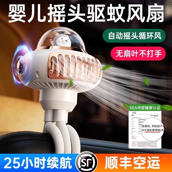 奢姿 可驱蚊摇头】婴儿车风扇无叶八爪鱼bb手推车夏天遛娃降温神器宝宝专用吹辅食充电风扇便携式夹式静音儿童车载