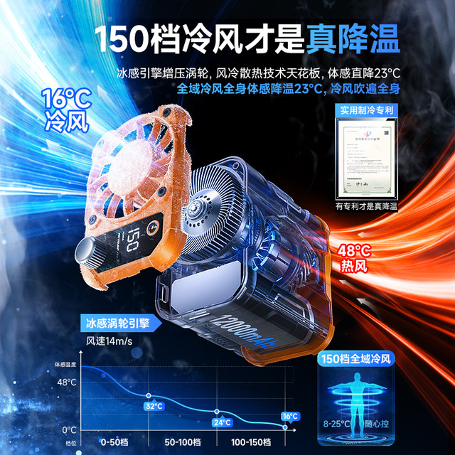 奢姿 挂腰风扇随身便携式夹腰间消暑降温神器高温户外工地充电强力小共田挂脖夏天季厨房制冷空调衣服穿戴超长续航