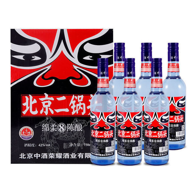 崇门楼 正宗北京二锅头白酒一斤半蓝瓶42度750ml*6瓶口感柔和正品包邮