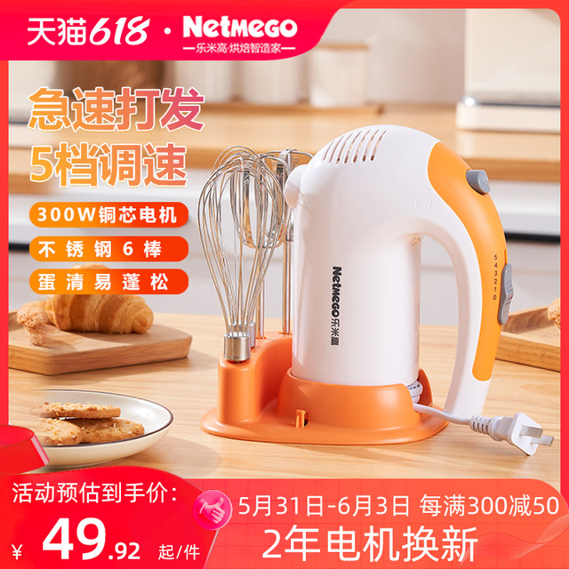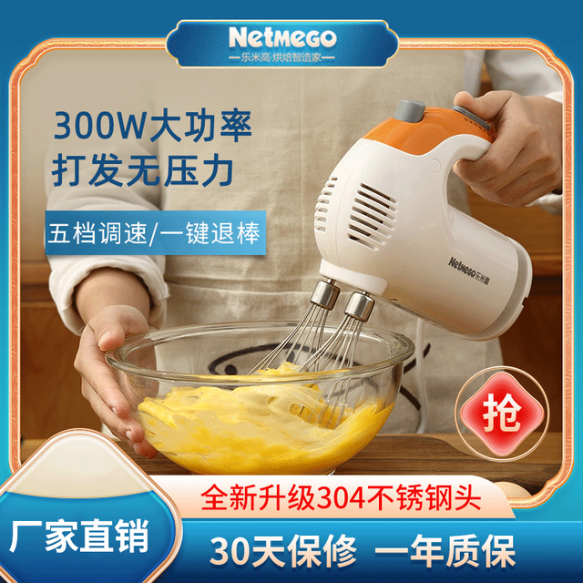 乐米高 Netmego 300W电动打蛋器大功率手持面糊打蛋机小型家用烘奶油打发搅拌器38D+304线棒