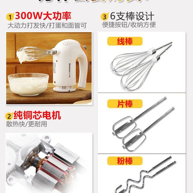 乐米高 Netmego 300W电动打蛋器大功率手持面糊打蛋机小型家用烘奶油打发搅拌器 38D+304线棒 3人团