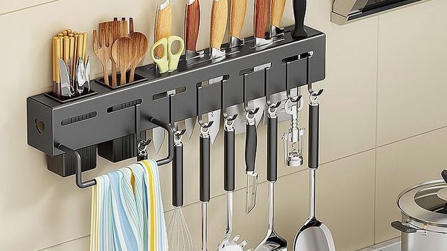 厨房里面的刀具摆放是最头疼的一件事情,因为放不好的话会显得到处很凌乱,而且也不安全,所以弄一个这样的厨房置物架来收纳刀具的话,真的是非常方便,整个厨房都干净整齐...