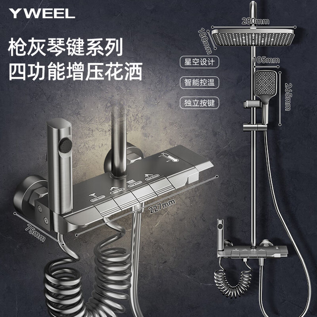国家补贴、PLUS会员:一卫 YWEEL 淋浴花洒套装 冷热数显 增压 全铜龙头
