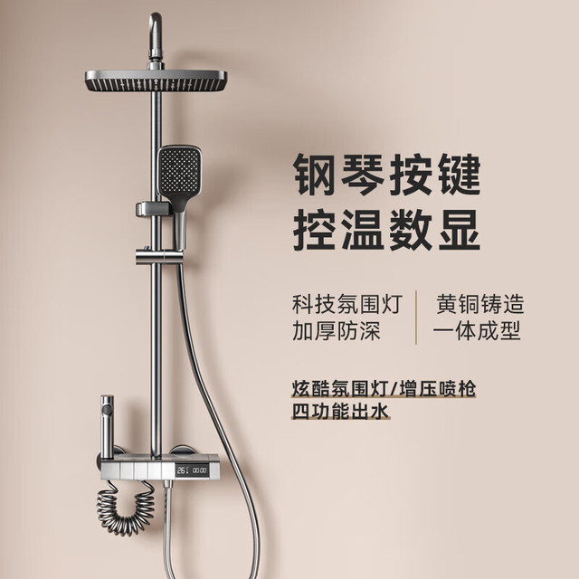 国家补贴:一卫 YWEEL 高端全套增压沐浴花洒套装 氛围灯-数显冷热款