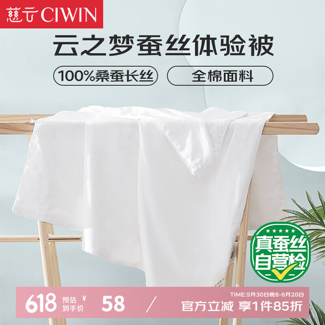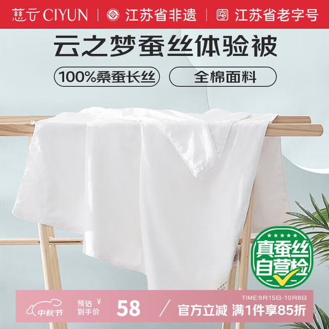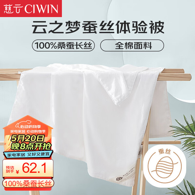 慈云 蚕丝被体验被 100%桑蚕长丝儿童学生被子午睡小盖被110*120cm白色