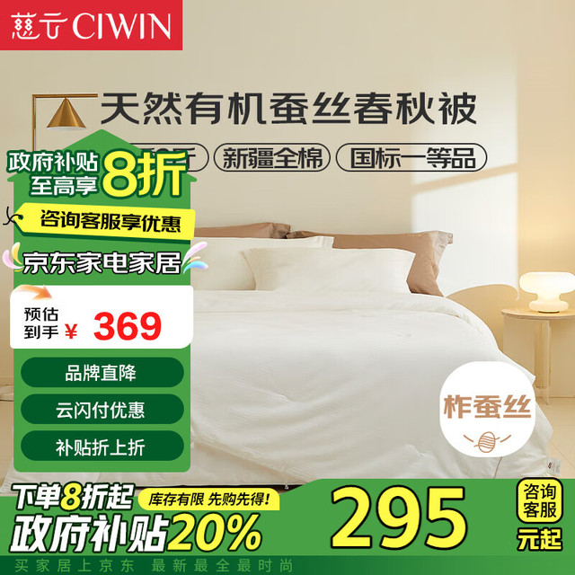“慈云"牌蚕丝被是中国驰名商标,江苏名牌产品。公司年产几十万床蚕丝被和高档真丝家纺产品,销售网络畅通,全国各大中城市设有几十家专卖店,并拥有自营进出口权,是业内...