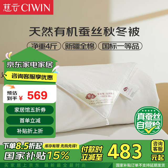 慈云 天然蚕丝被 100%蚕丝中长丝 220*240cm 4斤总重6.8斤